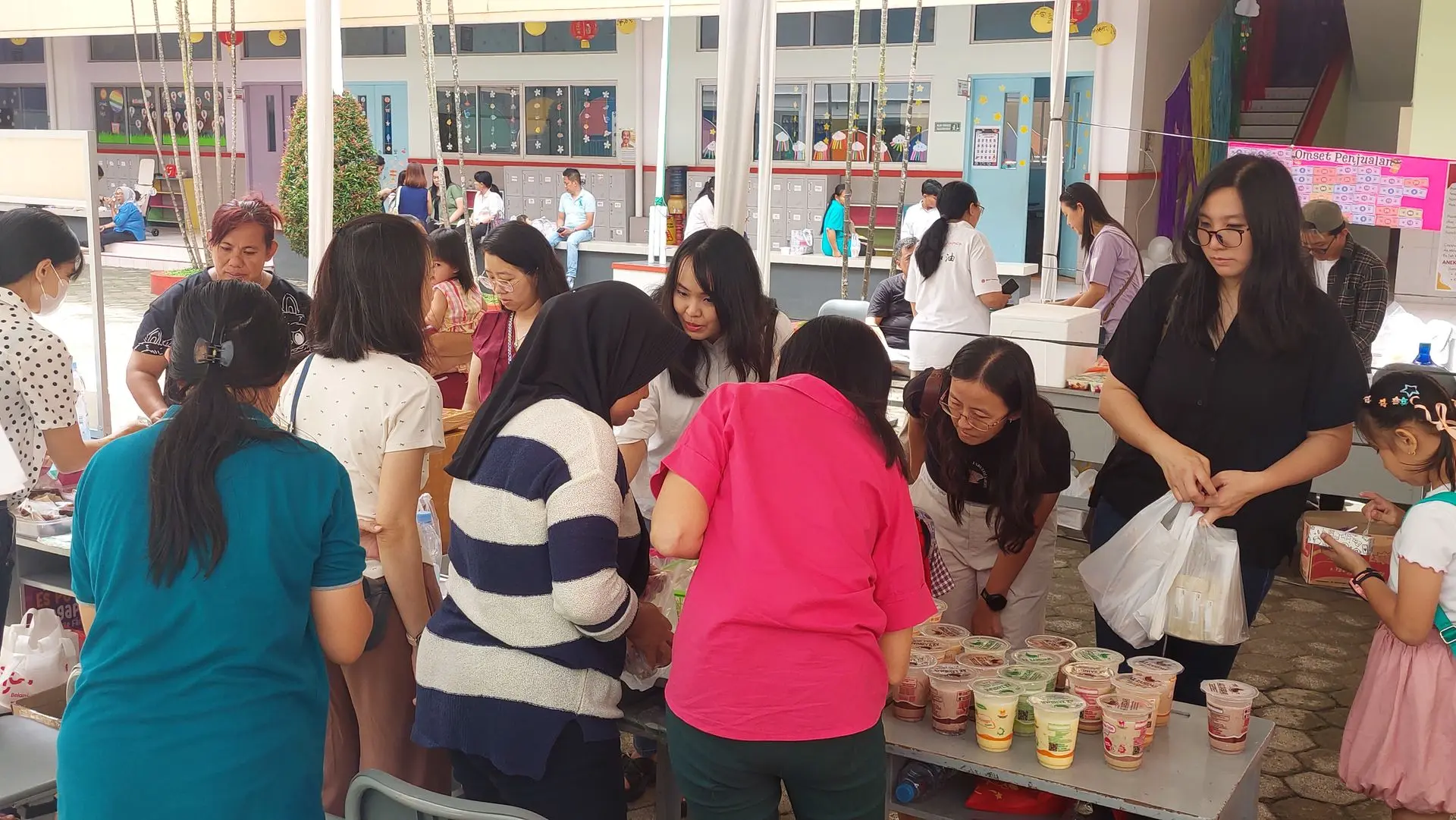 Suasana meriah terlihat sejak pagi. Stan bazar yang dikelola perwakilan orang tua menghadirkan produk kuliner, makanan sehat, mainan edukasi, hingga aksesori kreatif. Pengunjung memenuhi setiap sudut, mencicipi ragam sajian yang diracik dengan penuh kreativitas.