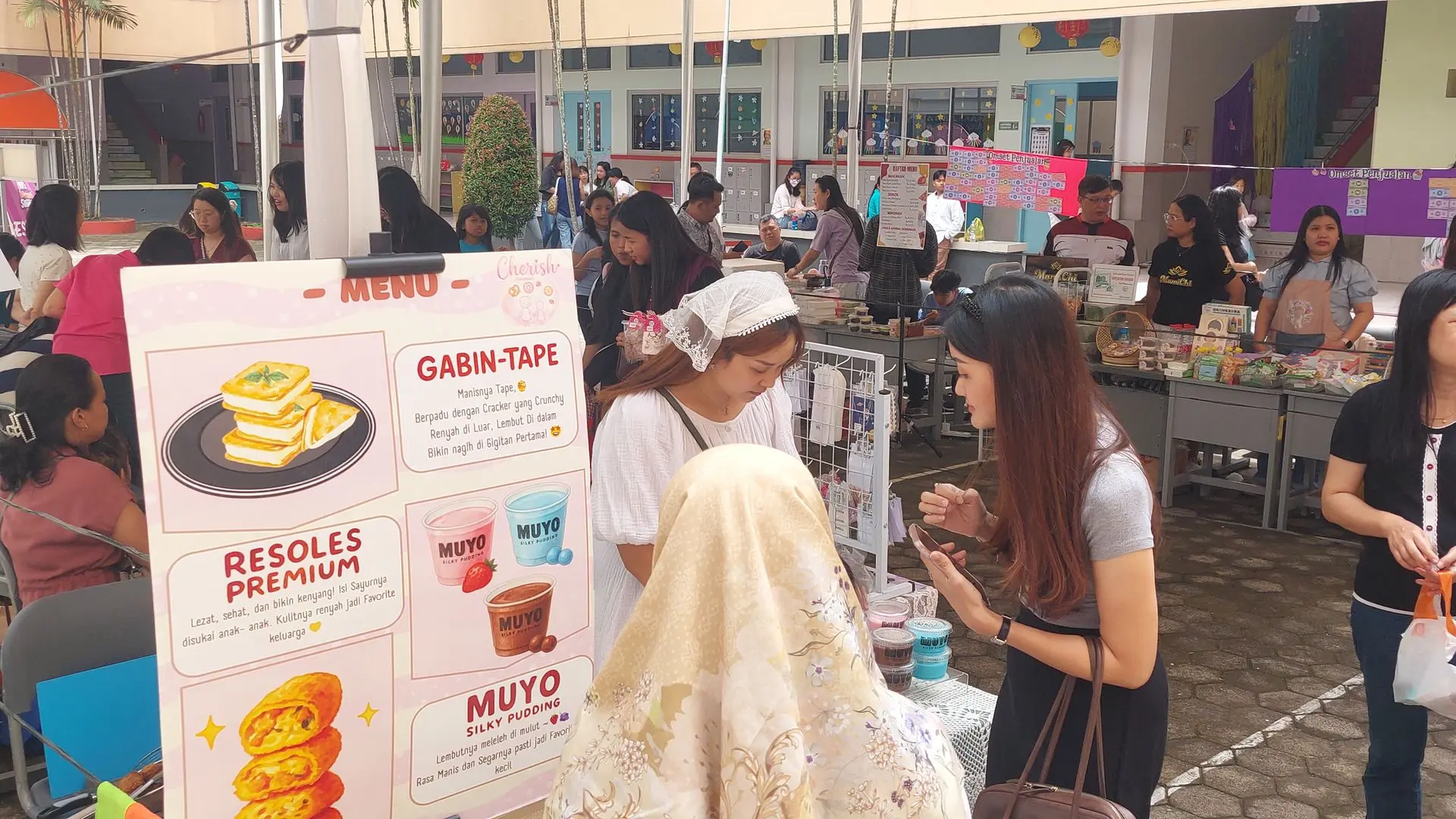 Dari Grade 6, Mom Sri Rejeki, Mom Wiwi, dan Mom Renata menyajikan Mochi Daifuku, Taiyaki, hingga Es Krim Singapore. Grade 5 melalui iCafe dari Mom Sherly menjadi favorit dengan Nasi Ayam Teriyaki, Geprek, dan Salad Buah.