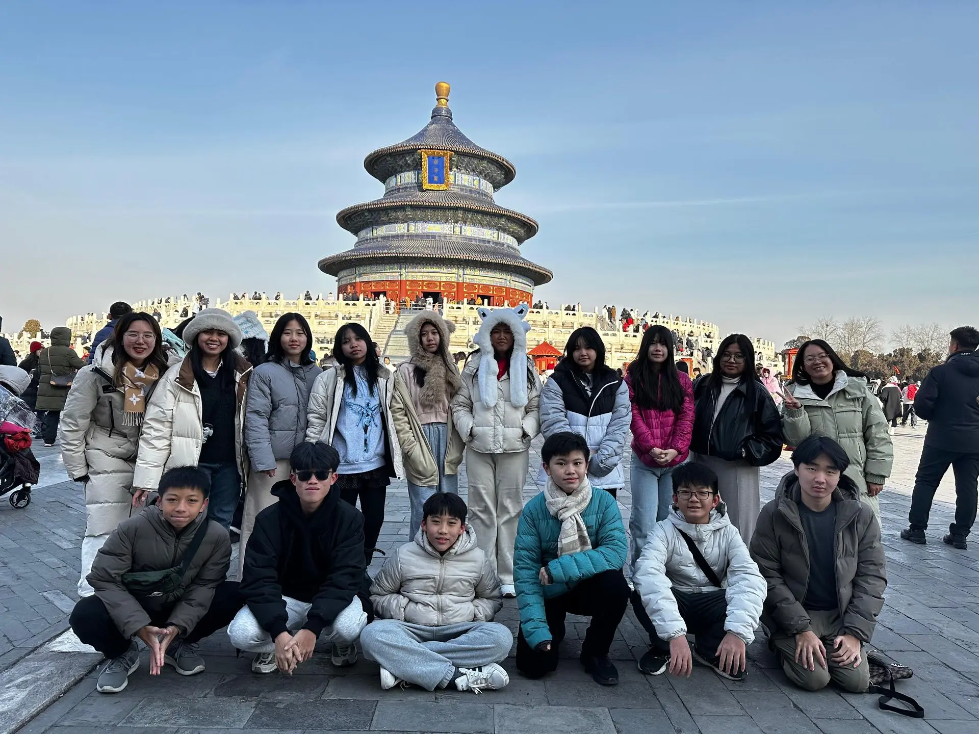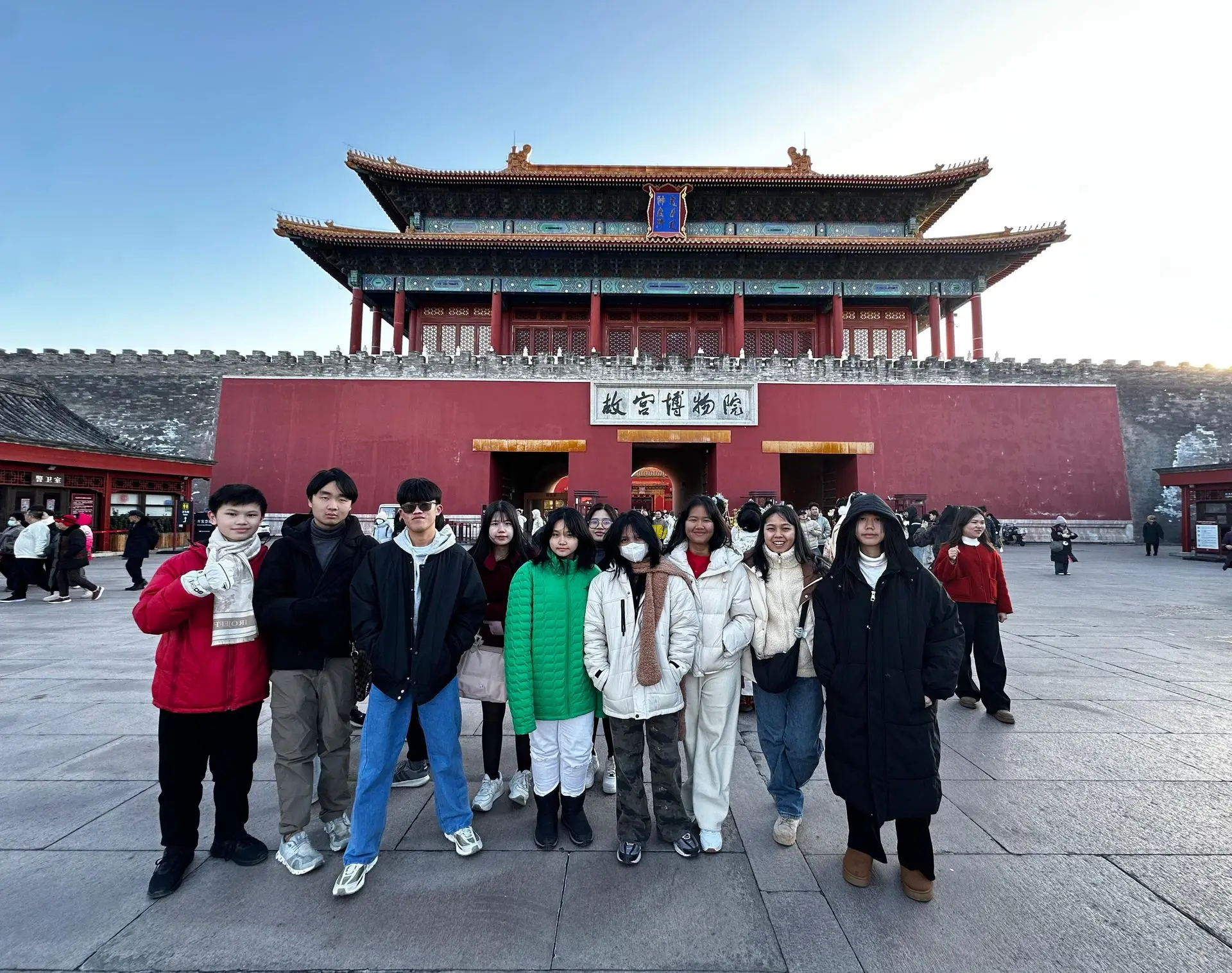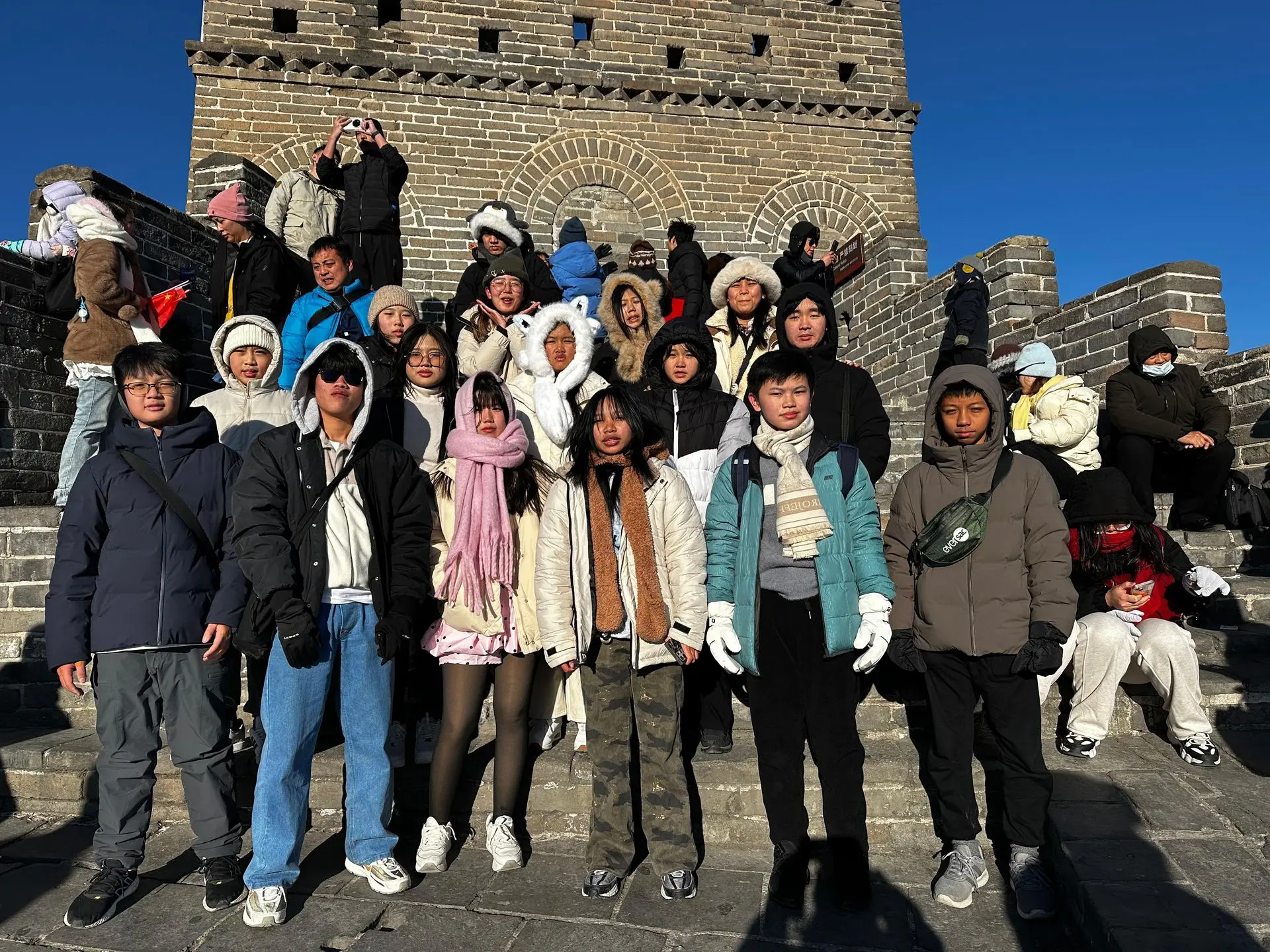 Perjalanan kemudian berlanjut ke Beijing, kota di mana sejarah dan modernitas berpadu secara memukau. Para siswa menyusuri warisan dunia di Kota Terlarang (故宫) dan Kuil Langit (天坛), mengagumi arsitektur modern di Bird’s Nest, serta merasakan keagungan Tembok Besar Tiongkok (万里长城) yang menjadi salah satu situs warisan dunia. Tak kalah berkesan, untuk pertama kalinya banyak siswa merasakan pengalaman belajar bermain ski di lereng Qishan dan menikmati langsung kuliner lokal seperti malatang dan hotpot yang disantap bersama teman dan guru. Kebersamaan dalam perjalanan, di meja makan, hingga di lokasi wisata menjadi ruang tumbuh bagi kemandirian dan kepekaan sosial mereka. Puhua Jiayou!